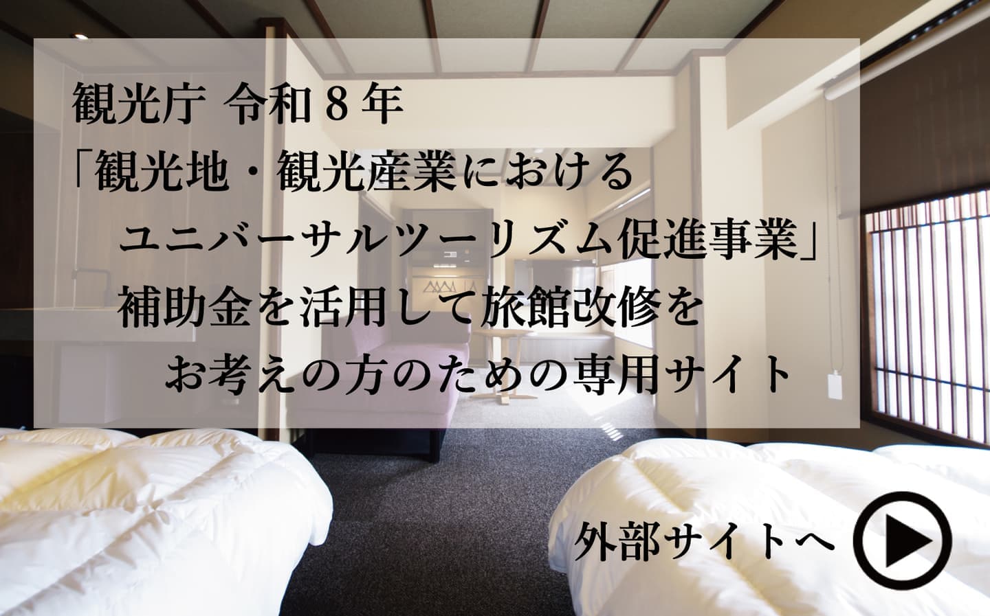 年配のお客様に対応できる客室が無いのが悩みでした。和室客室を畳スペース付きのベッドルーム客室に改修し、今では若いお客様~年配のお客様まであらゆる層のお客様に喜んでいただいております。